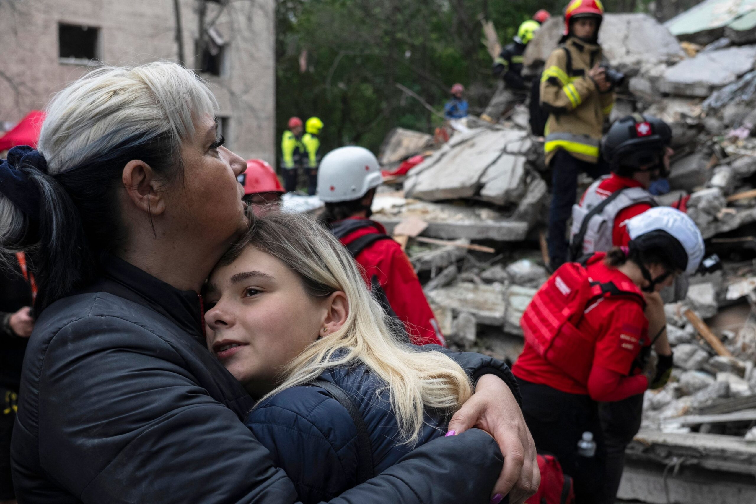 Ten children, the youngest being a 5-month-old girl, were among the injured, Kyiv City Military Administration head Tymur Tkachenko said. A large part of a nine-story residential building collapsed after it was struck, he said.